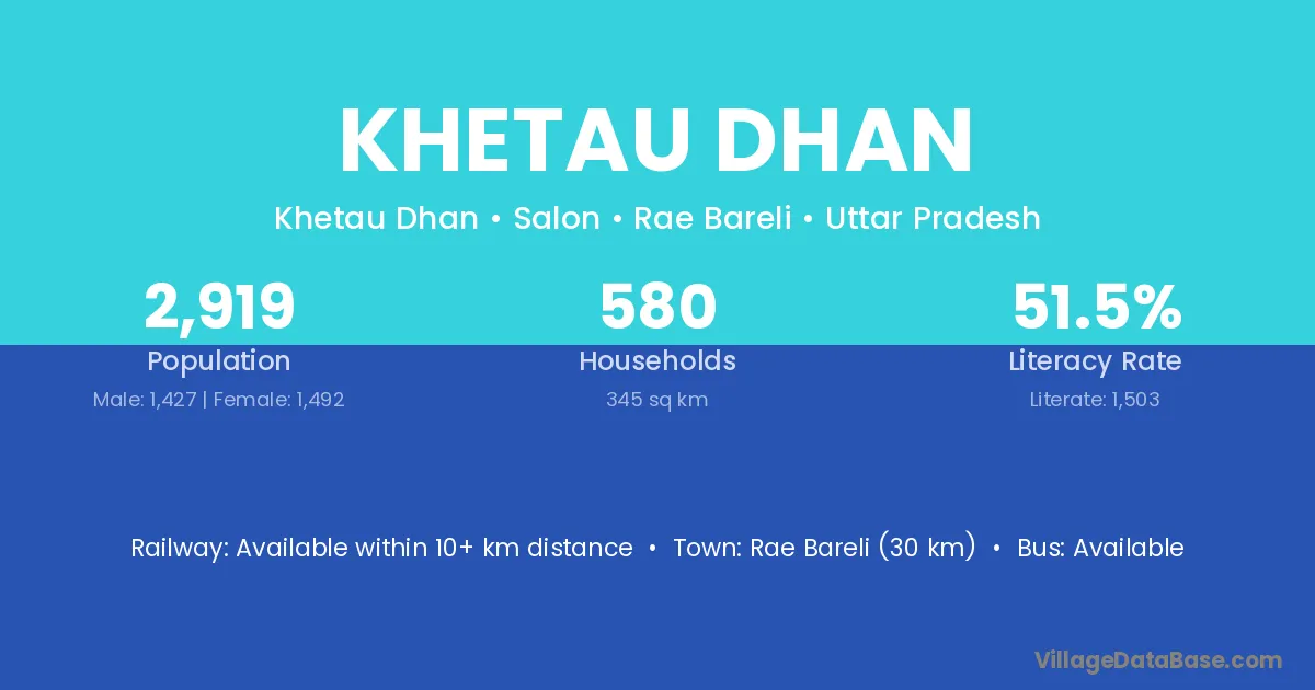 Rae Bareli (30 km) is the nearest town to Khetau Dhan village for major economic activities and is located approximately 30 km away.