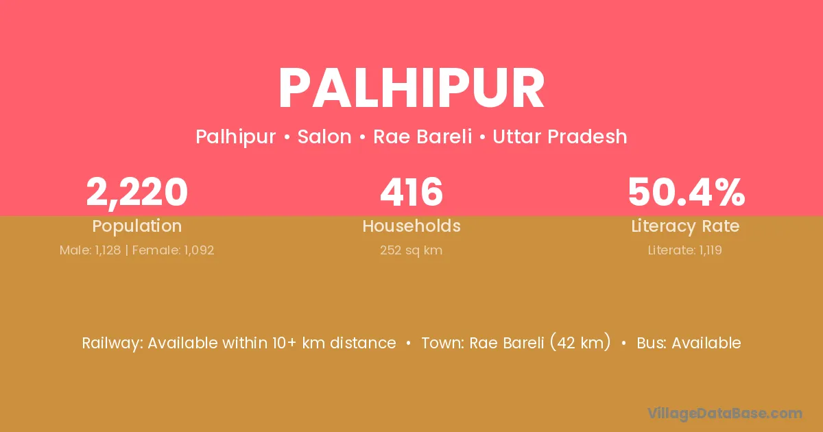 Rae Bareli (42 km) is the nearest town to Palhipur village for major economic activities and is located approximately 42 km away.
