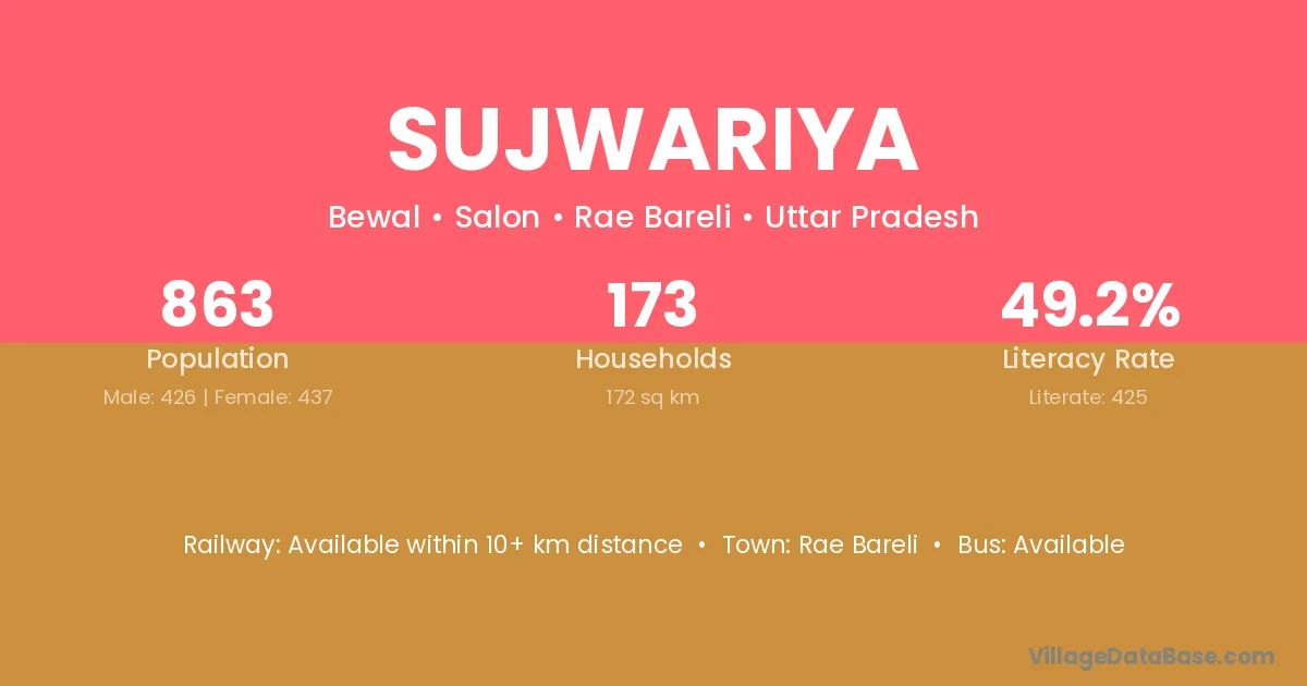 Sujwariya village has a total population of 863 people, of which 426 are males and 437 are females.