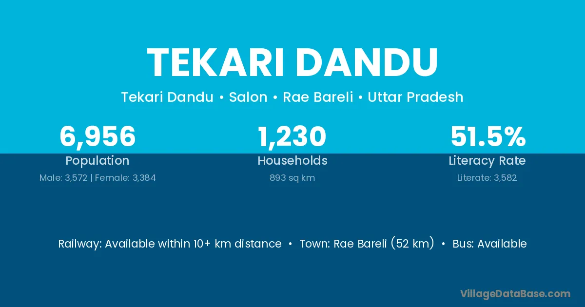 Rae Bareli (52 km) is the nearest town to Tekari Dandu village for major economic activities and is located approximately 52 km away.