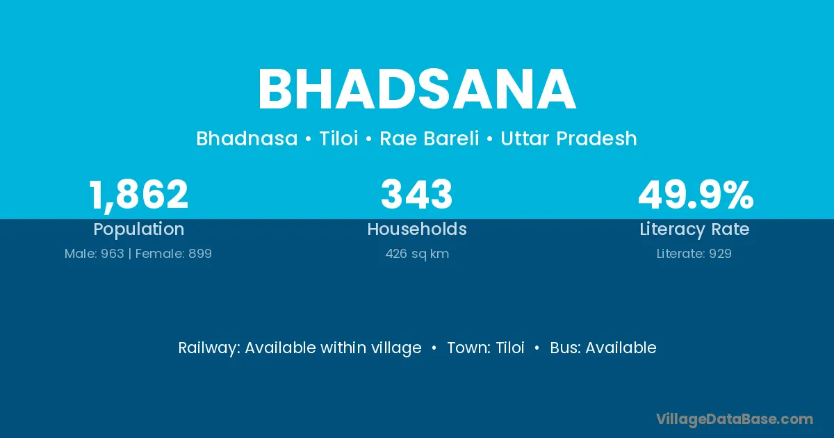 Bhadsana village has a total population of 1,862 people, of which 963 are males and 899 are females.