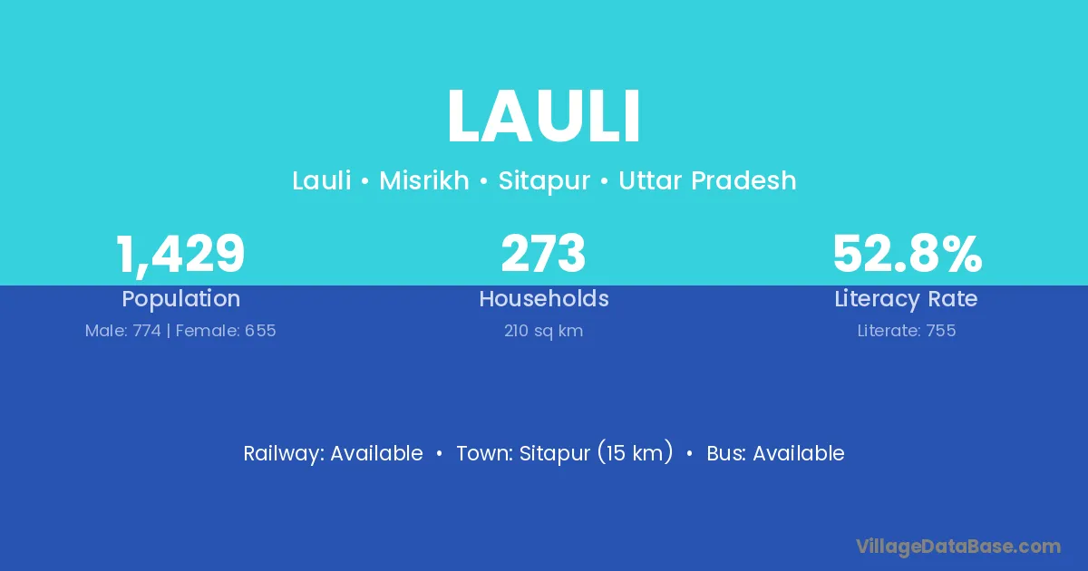 Rae Bareli (60 km) is the nearest town to Lauli village for major economic activities and is located approximately 60 km away.