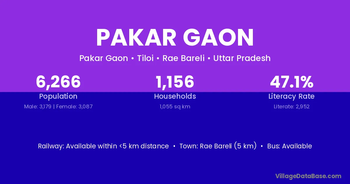 Rae Bareli (5 km) is the nearest town to Pakar Gaon village for major economic activities and is located approximately 5 km away.