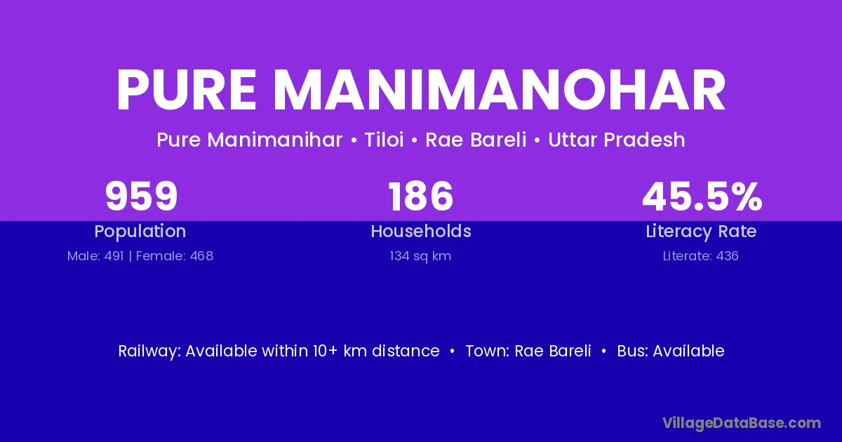 Rae Bareli is the nearest town to Pure Manimanohar village for major economic activities