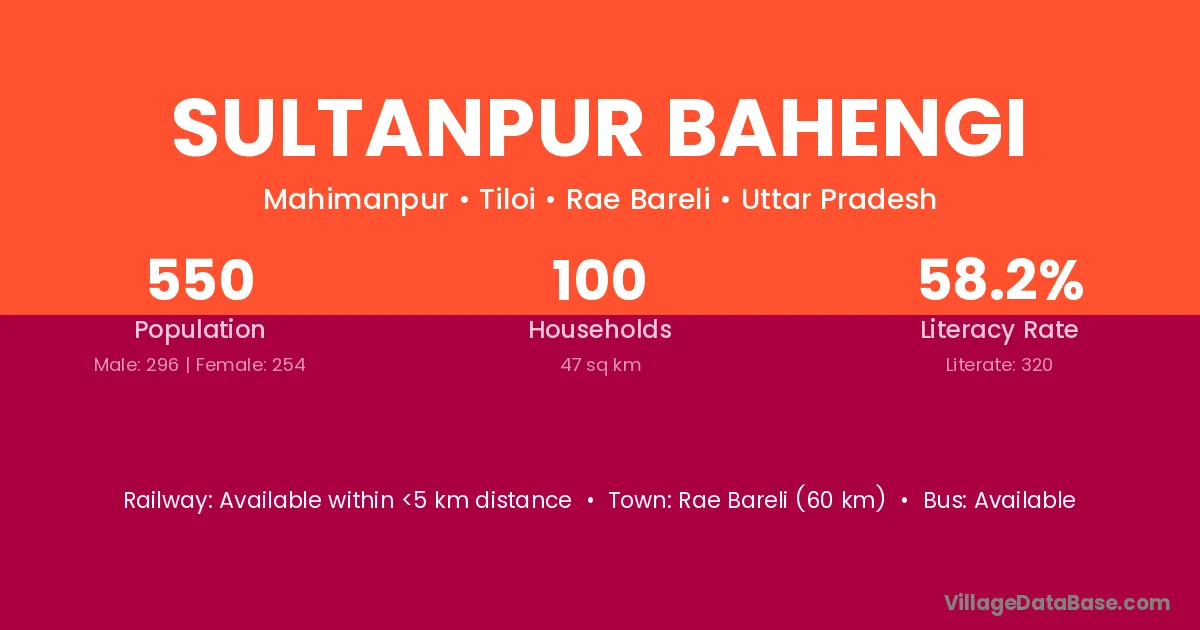 Sultanpur Bahengi village has a total population of 550 people, of which 296 are males and 254 are females.