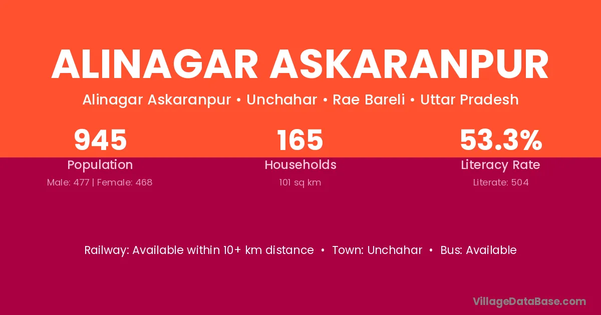 Alinagar Askaranpur village has a total population of 945 people, of which 477 are males and 468 are females.