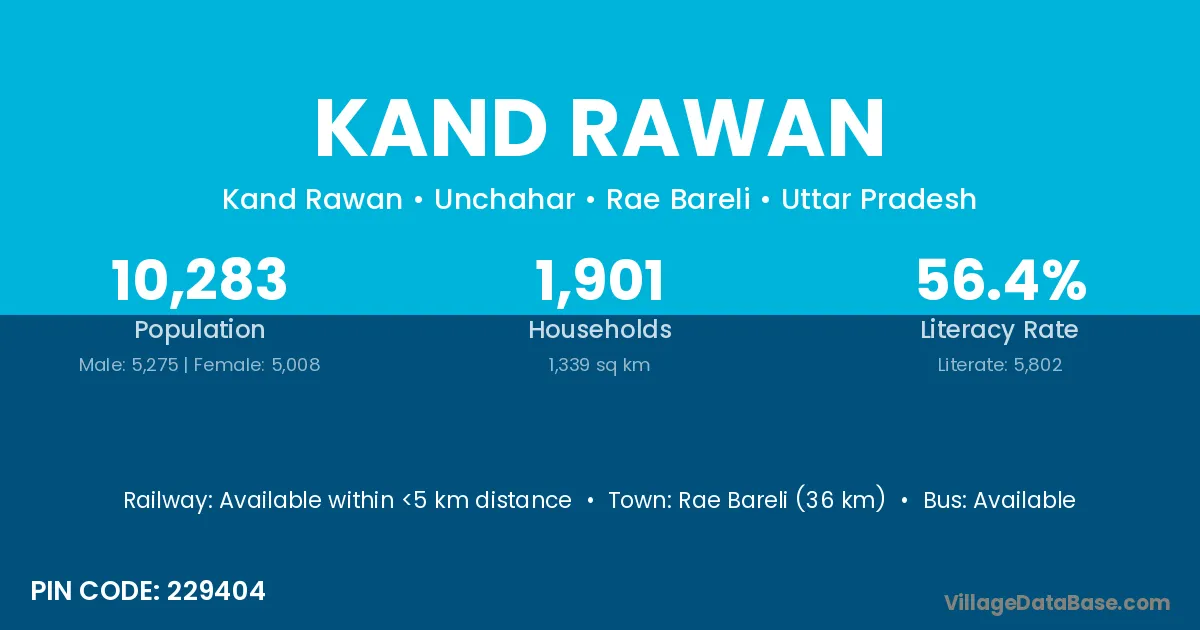 Rae Bareli (36 km) is the nearest town to Kand Rawan village for major economic activities and is located approximately 36 km away.