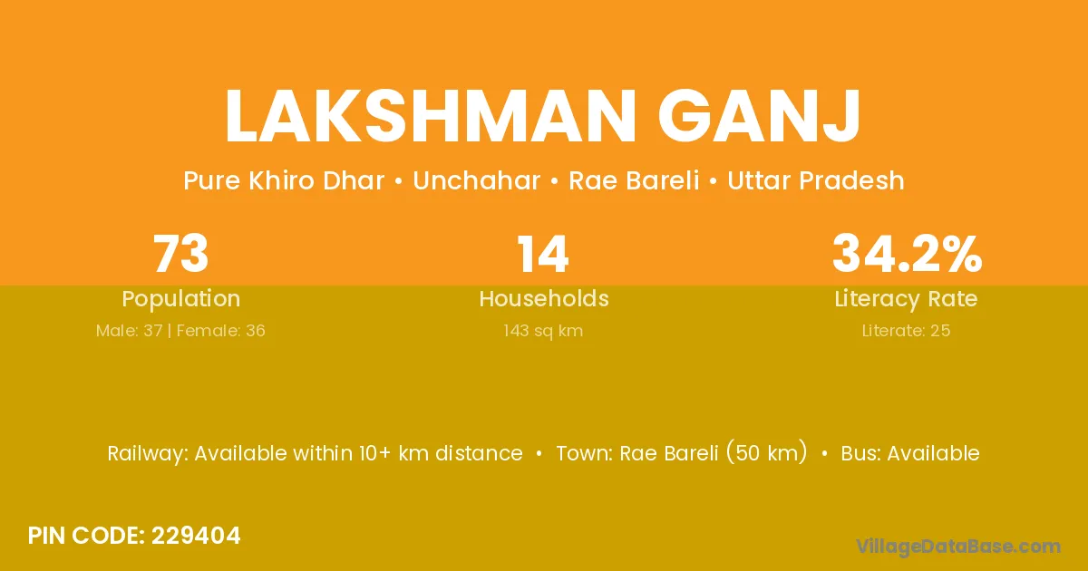 Rae Bareli (50 km) is the nearest town to Lakshman Ganj village for major economic activities and is located approximately 50 km away.