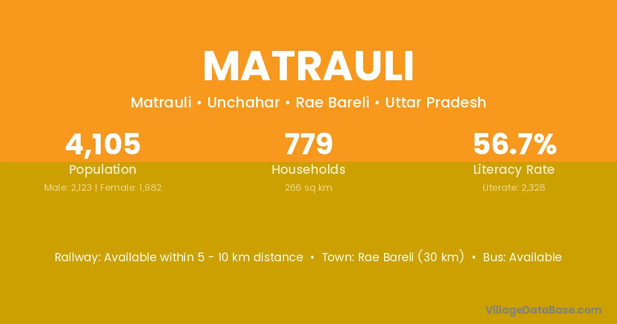 Rae Bareli (30 km) is the nearest town to Matrauli village for major economic activities and is located approximately 30 km away.