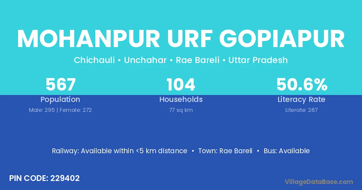Rae Bareli is the nearest town to Mohanpur Urf Gopiapur village for major economic activities