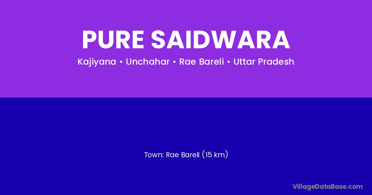 Rae Bareli (15 km) is the nearest town to Pure Saidwara village for major economic activities and is located approximately 15 km away.