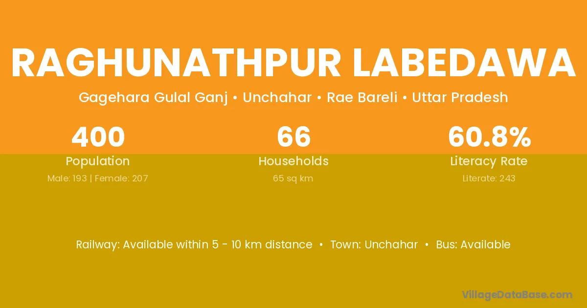 Raghunathpur Labedawa village has a total population of 400 people, of which 193 are males and 207 are females.