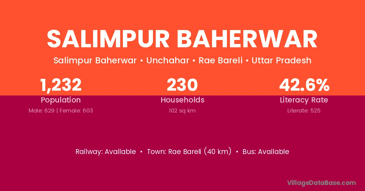 Rae Bareli (40 km) is the nearest town to Salimpur Baherwar village for major economic activities and is located approximately 40 km away.