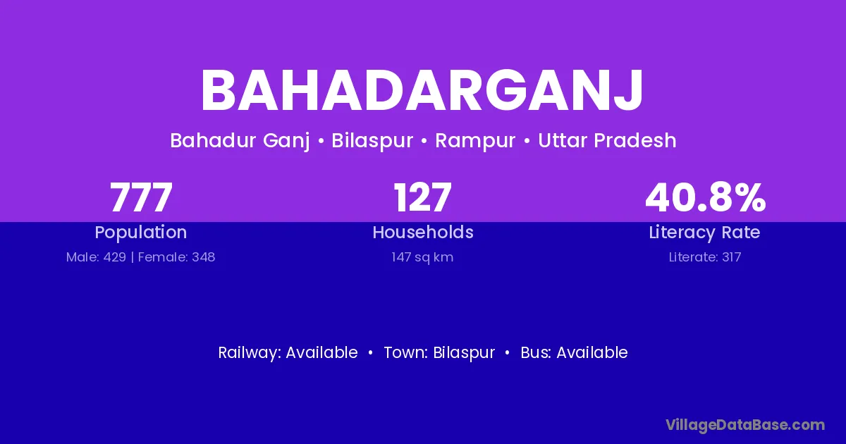 Bahadarganj village has a total population of 777 people, of which 429 are males and 348 are females.