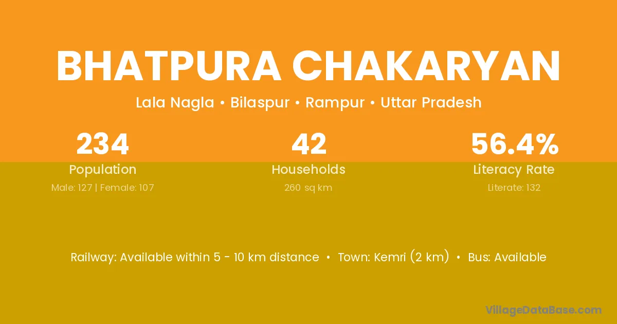 Bhatpura Chakaryan village has a total population of 234 people, of which 127 are males and 107 are females.