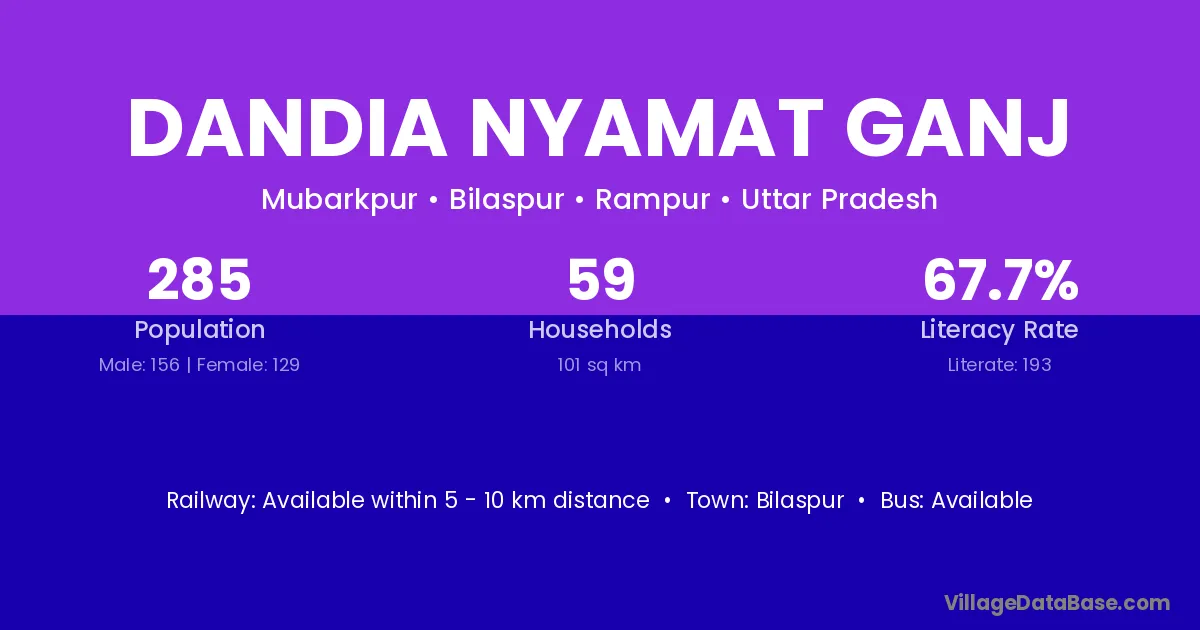 Dandia Nyamat Ganj village has a total population of 285 people, of which 156 are males and 129 are females.