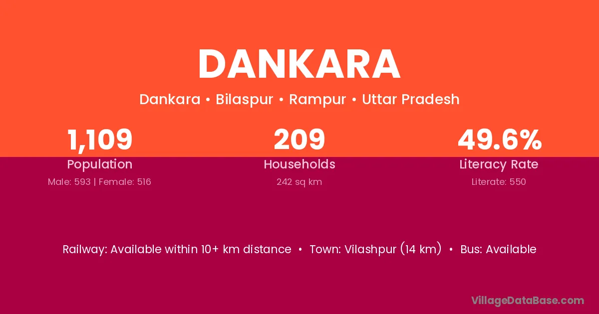 Vilashpur (14 km) is the nearest town to Dankara village for major economic activities and is located approximately 14 km away.