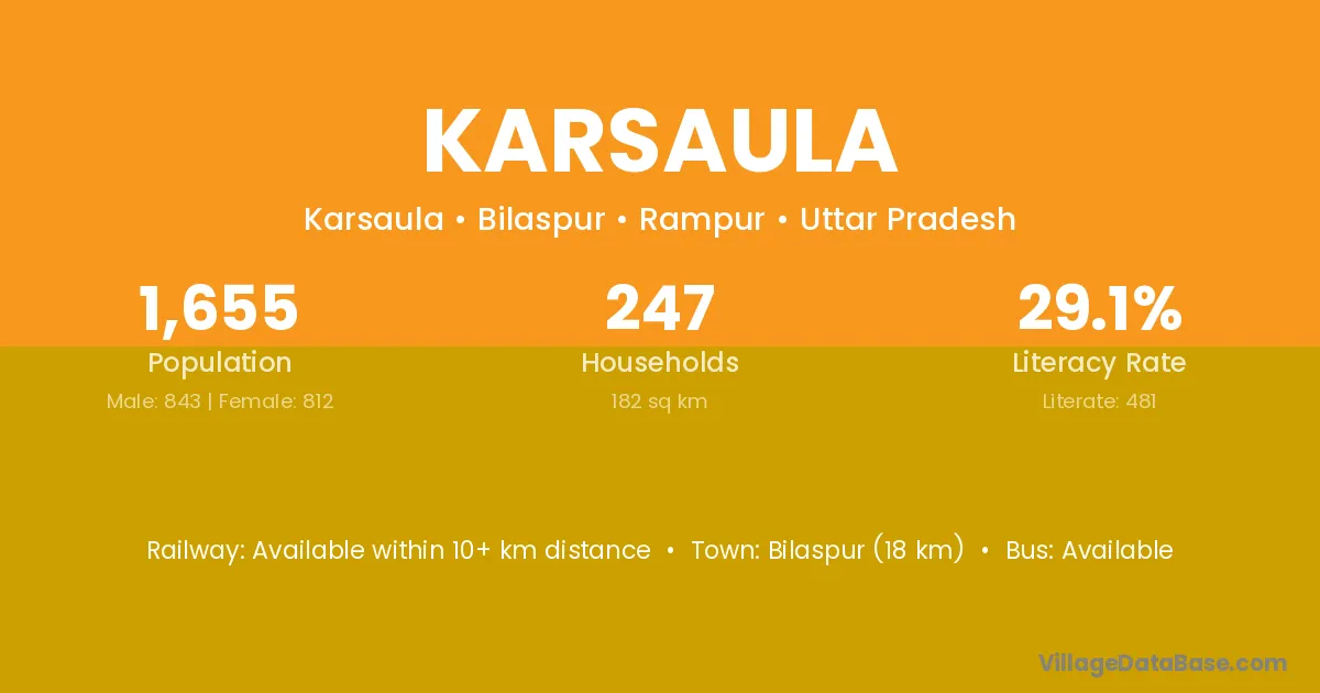 Bilaspur (18 km) is the nearest town to Karsaula village for major economic activities and is located approximately 18 km away.