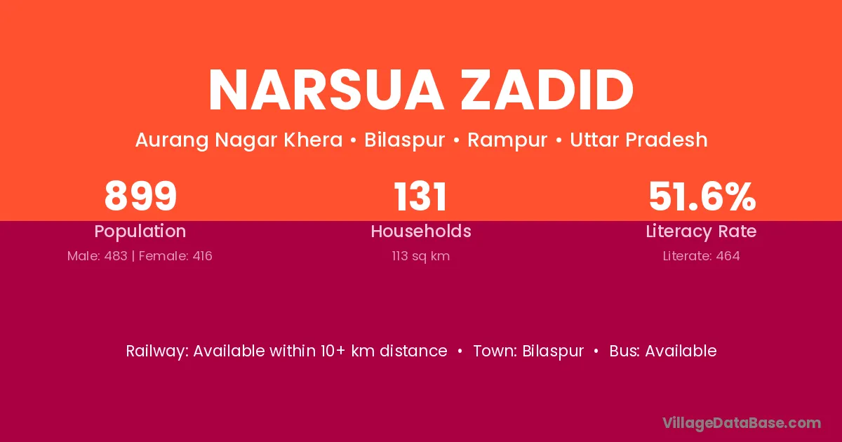 Narsua Zadid village has a total population of 899 people, of which 483 are males and 416 are females.