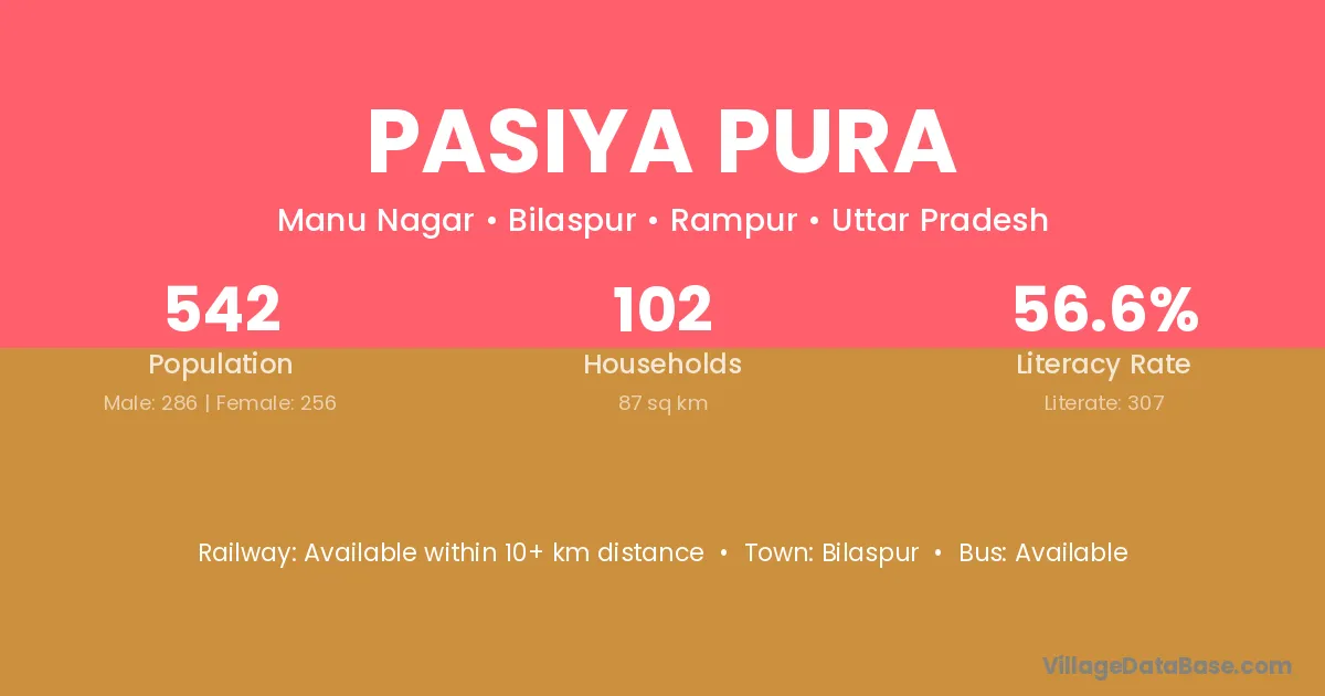 Pasiya Pura village has a total population of 542 people, of which 286 are males and 256 are females.