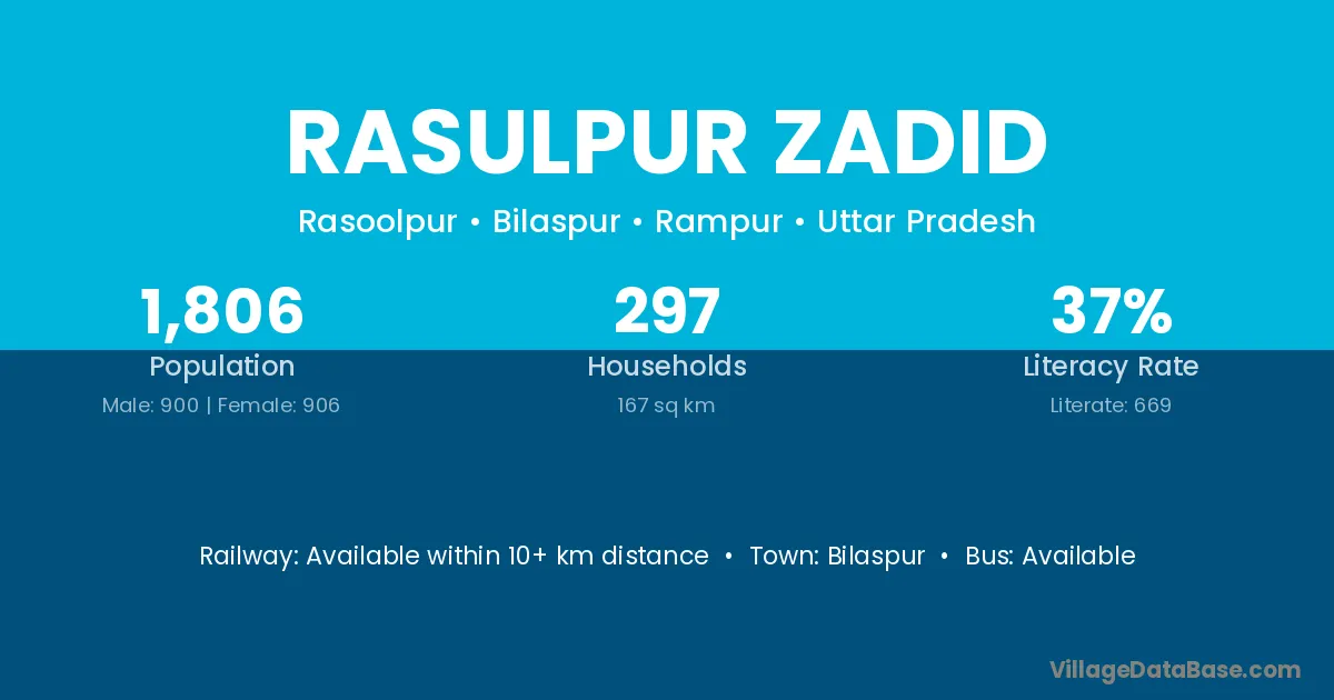 Rasulpur Zadid village has a total population of 1,806 people, of which 900 are males and 906 are females.