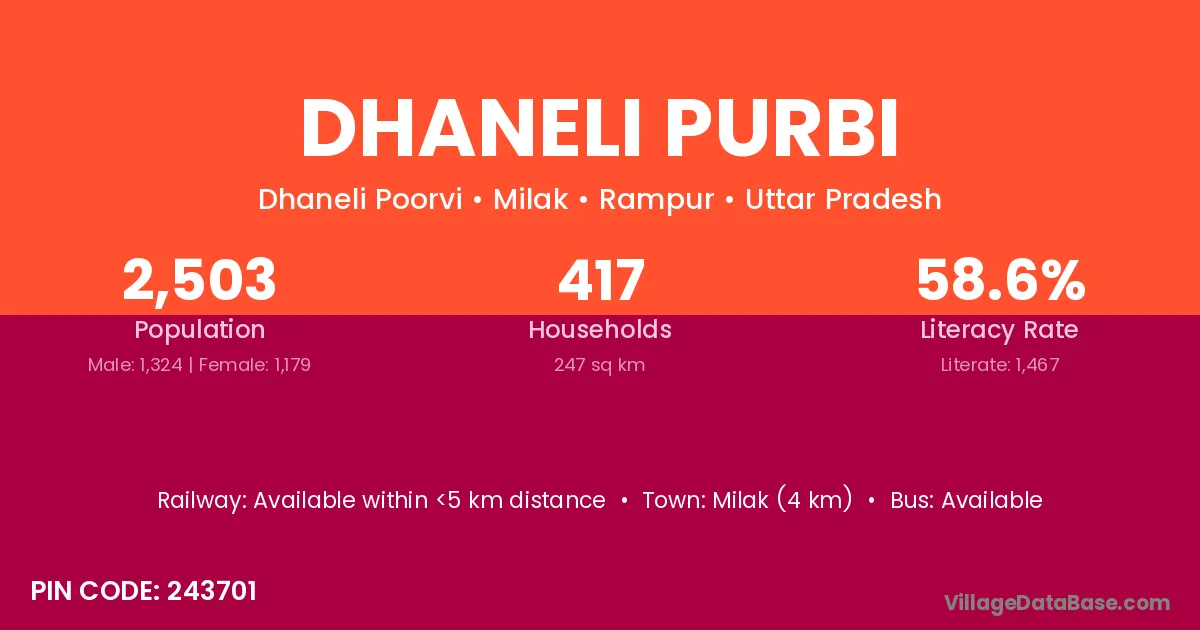 According to Census 2011 information, the village code of Dhaneli Purbi village is 243701.