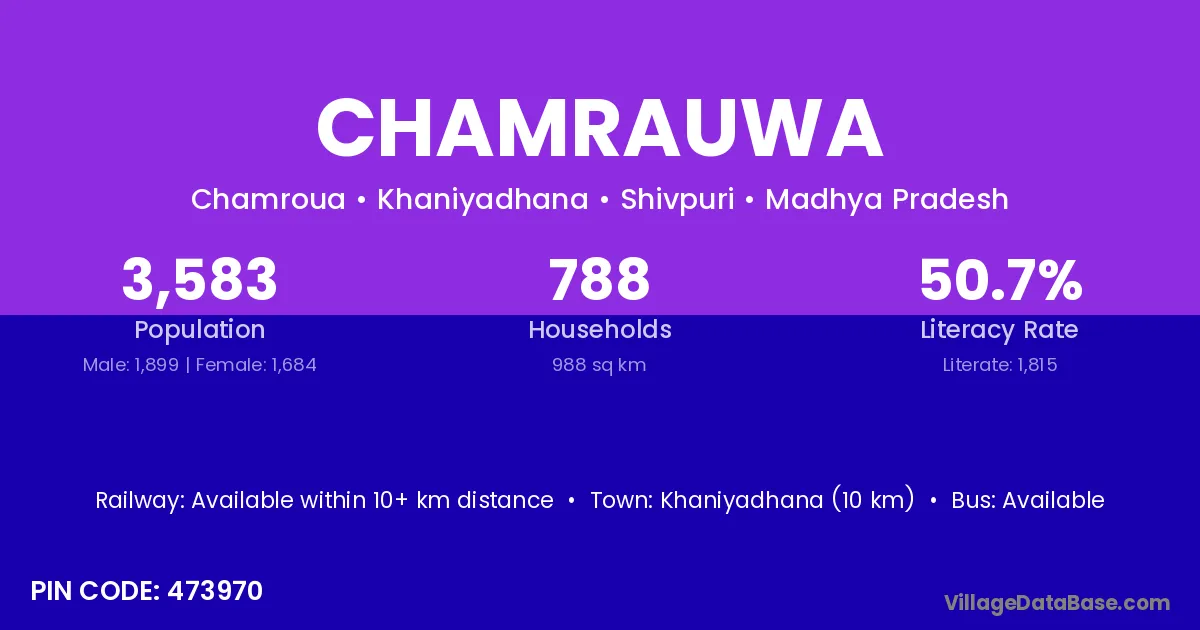 Chamrauwa village has a total population of 8,670 people, of which 4,390 are males and 4,280 are females.