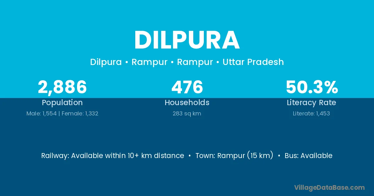 Rampur (15 km) is the nearest town to Dilpura village for major economic activities and is located approximately 15 km away.
