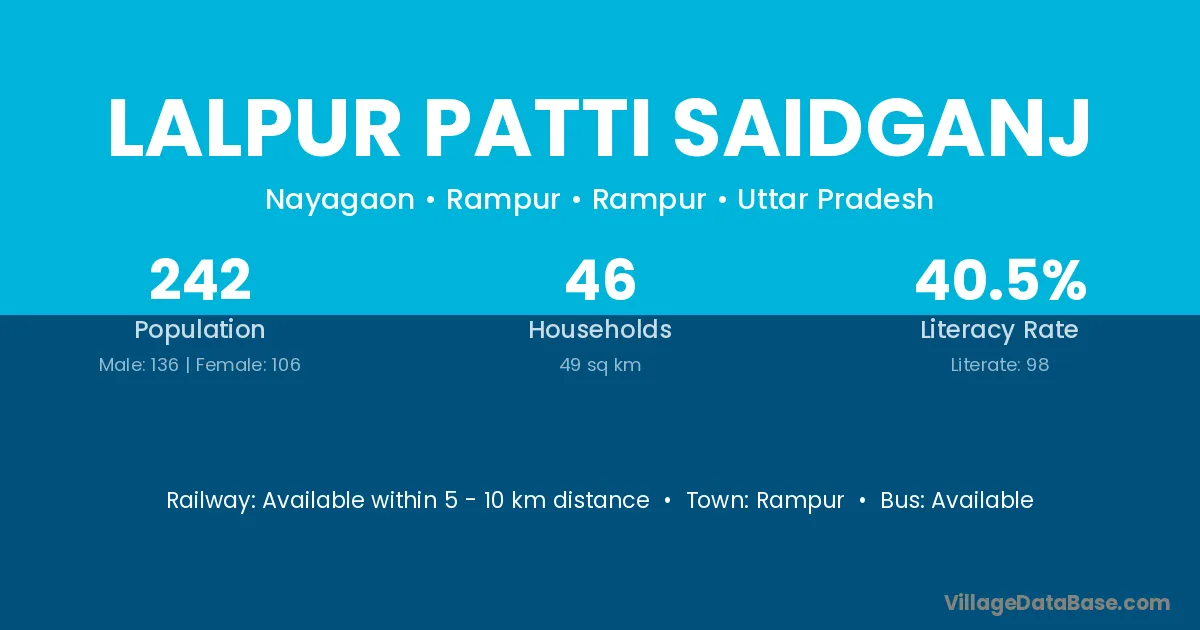 Lalpur Patti Saidganj village has a total population of 242 people, of which 136 are males and 106 are females.