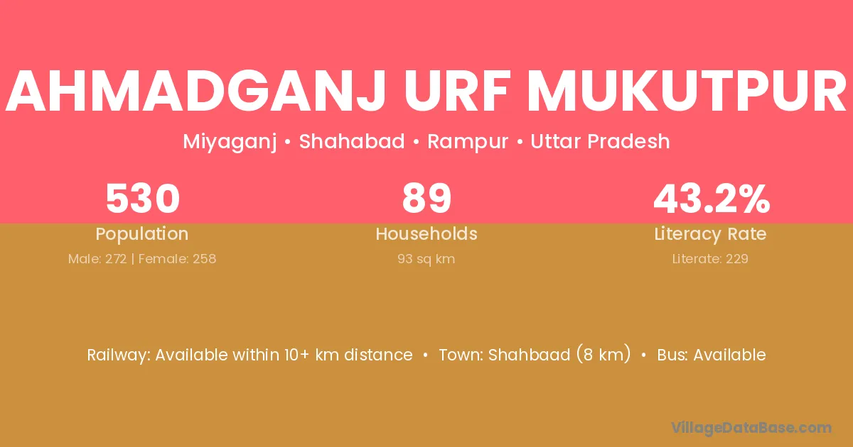 Ahmadganj Urf Mukutpur village has a total population of 530 people, of which 272 are males and 258 are females.