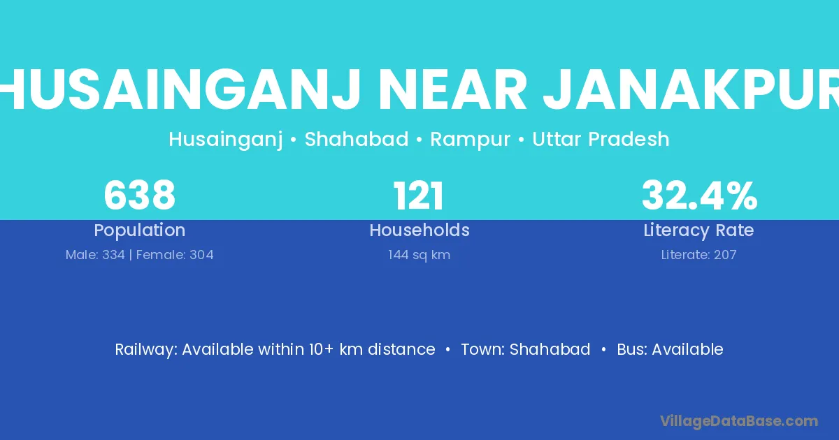 Husainganj Near Janakpur village has a total population of 638 people, of which 334 are males and 304 are females.