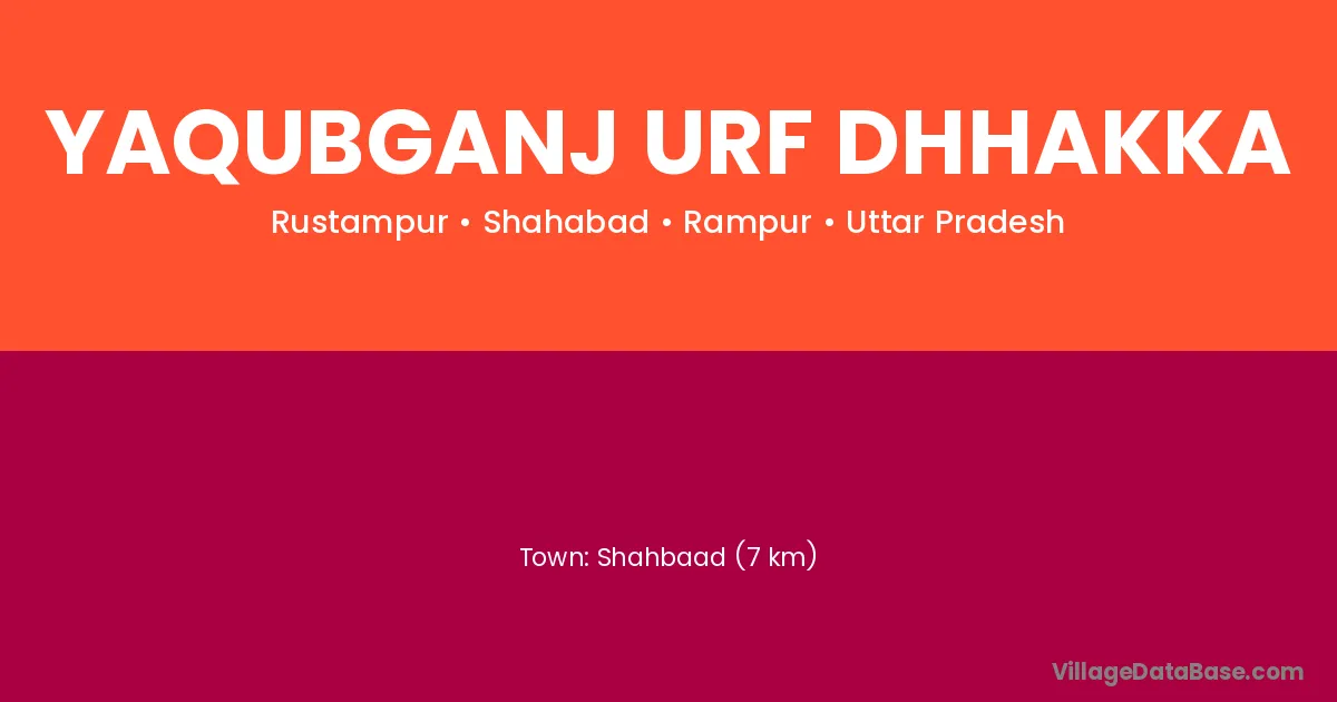 Shahbaad (7 km) is the nearest town to Yaqubganj Urf Dhhakka village for major economic activities and is located approximately 7 km away.