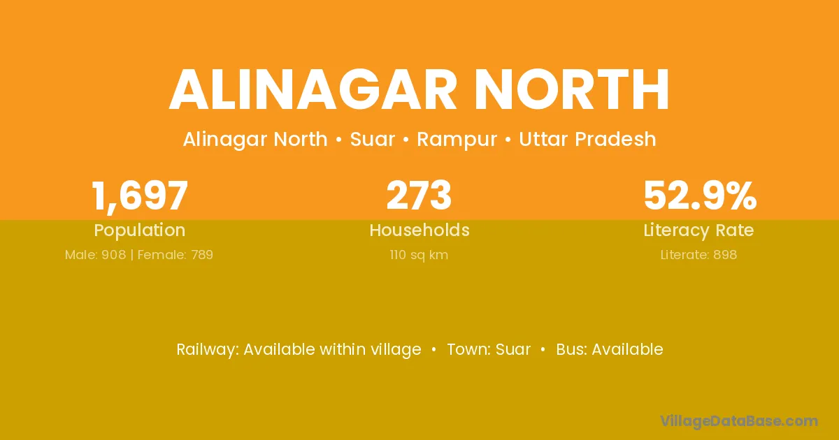 Alinagar North village has a total population of 1,697 people, of which 908 are males and 789 are females.