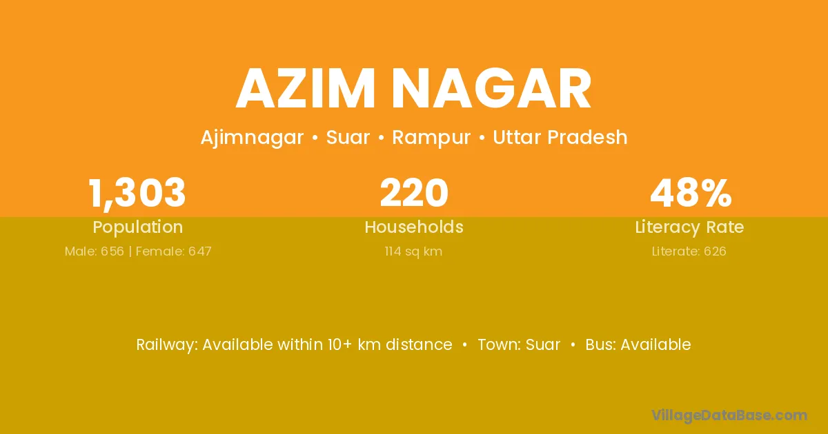 Azim Nagar village has a total population of 1,303 people, of which 656 are males and 647 are females.