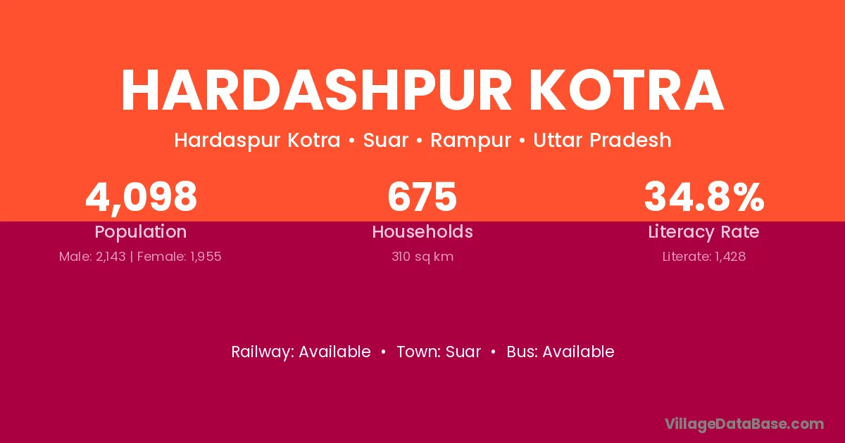 Hardashpur Kotra village has a total population of 4,098 people, of which 2,143 are males and 1,955 are females.