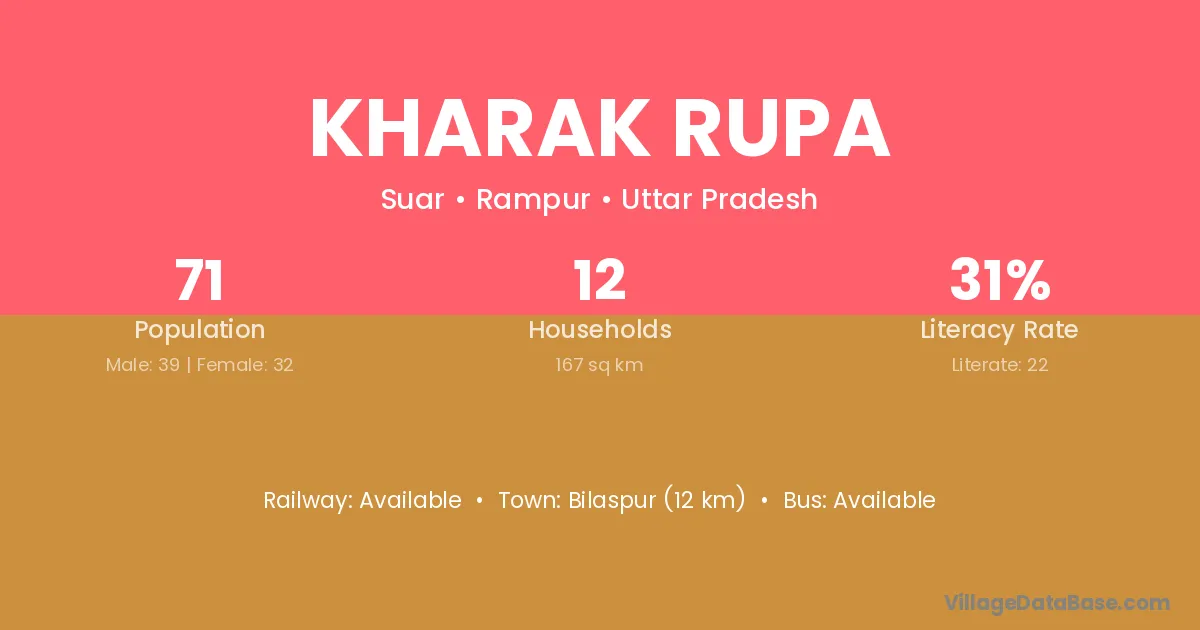 Kharak Rupa village has a total population of 71 people, of which 39 are males and 32 are females.
