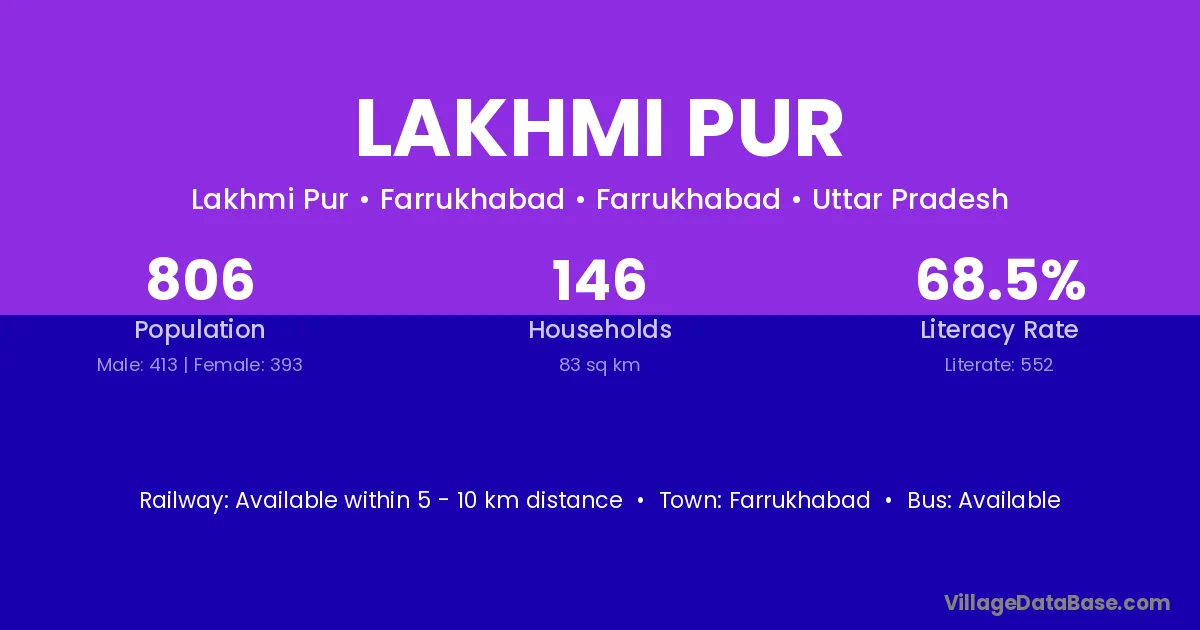The literacy rate of Lakhmi Pur village is 45.65%. Male literacy stands at 53.24% and female literacy at 37.34%.