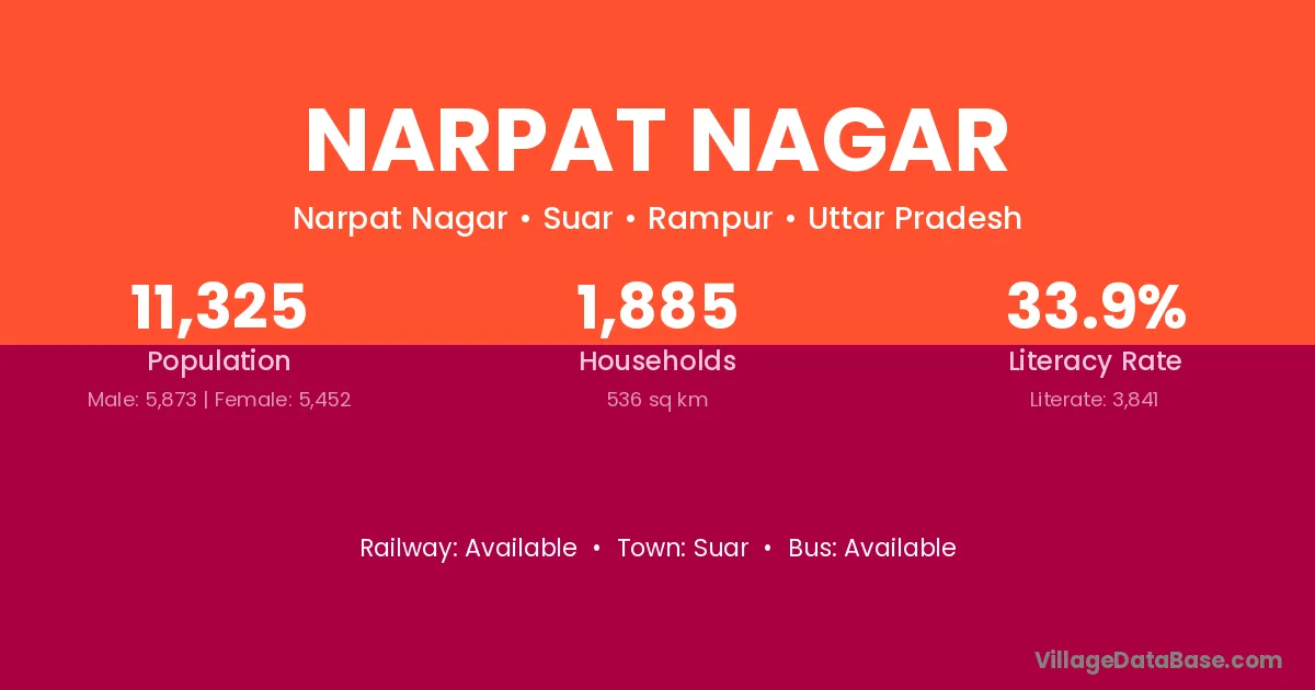 Narpat Nagar village has a total population of 11,325 people, of which 5,873 are males and 5,452 are females.