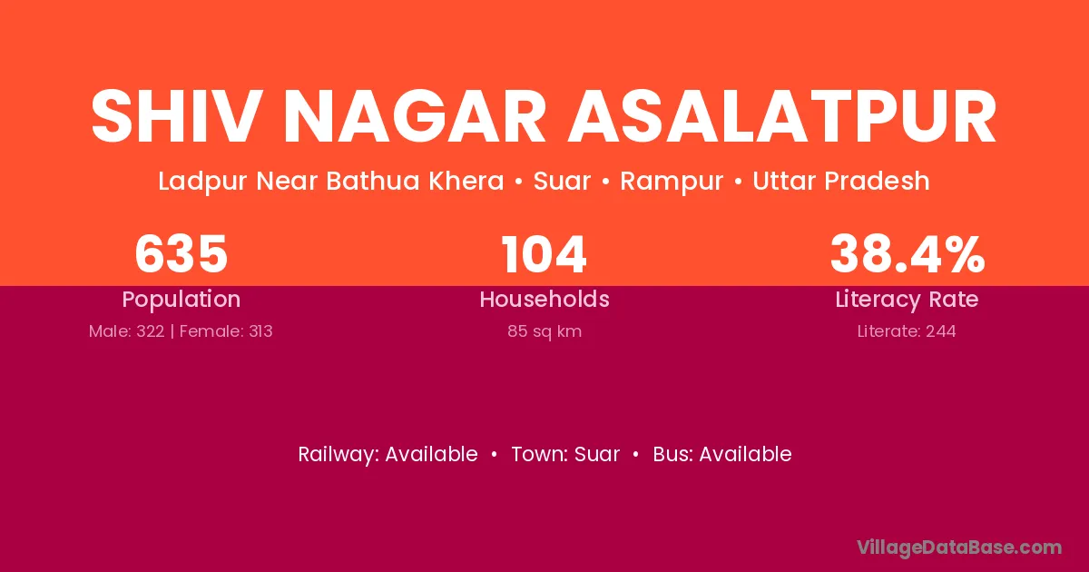 Shiv Nagar Asalatpur village has a total population of 635 people, of which 322 are males and 313 are females.