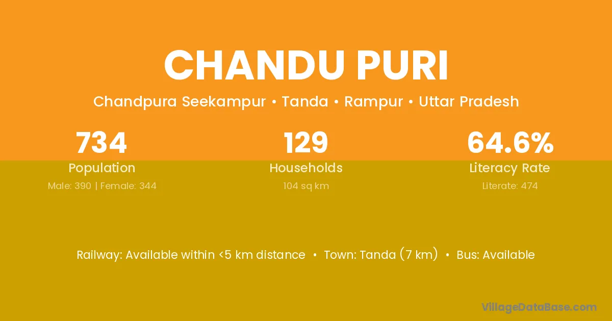 Tanda (7 km) is the nearest town to Chandu Puri village for major economic activities and is located approximately 7 km away.