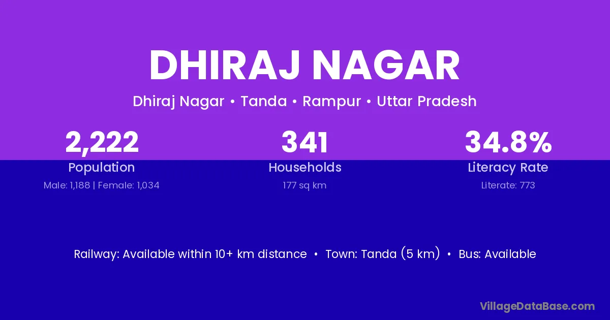 Tanda (5 km) is the nearest town to Dhiraj Nagar village for major economic activities and is located approximately 5 km away.