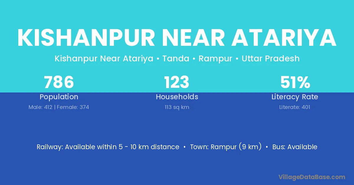 Rampur (9 km) is the nearest town to Kishanpur Near Atariya village for major economic activities and is located approximately 9 km away.