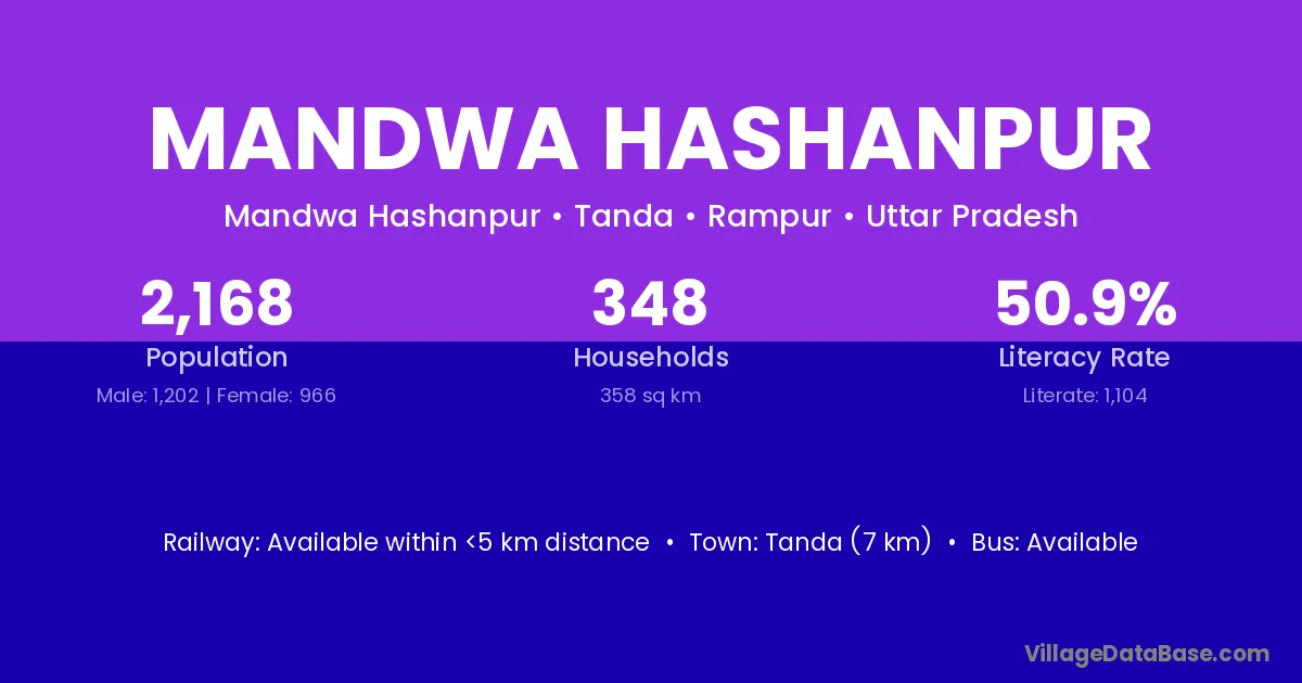 Tanda (7 km) is the nearest town to Mandwa Hashanpur village for major economic activities and is located approximately 7 km away.