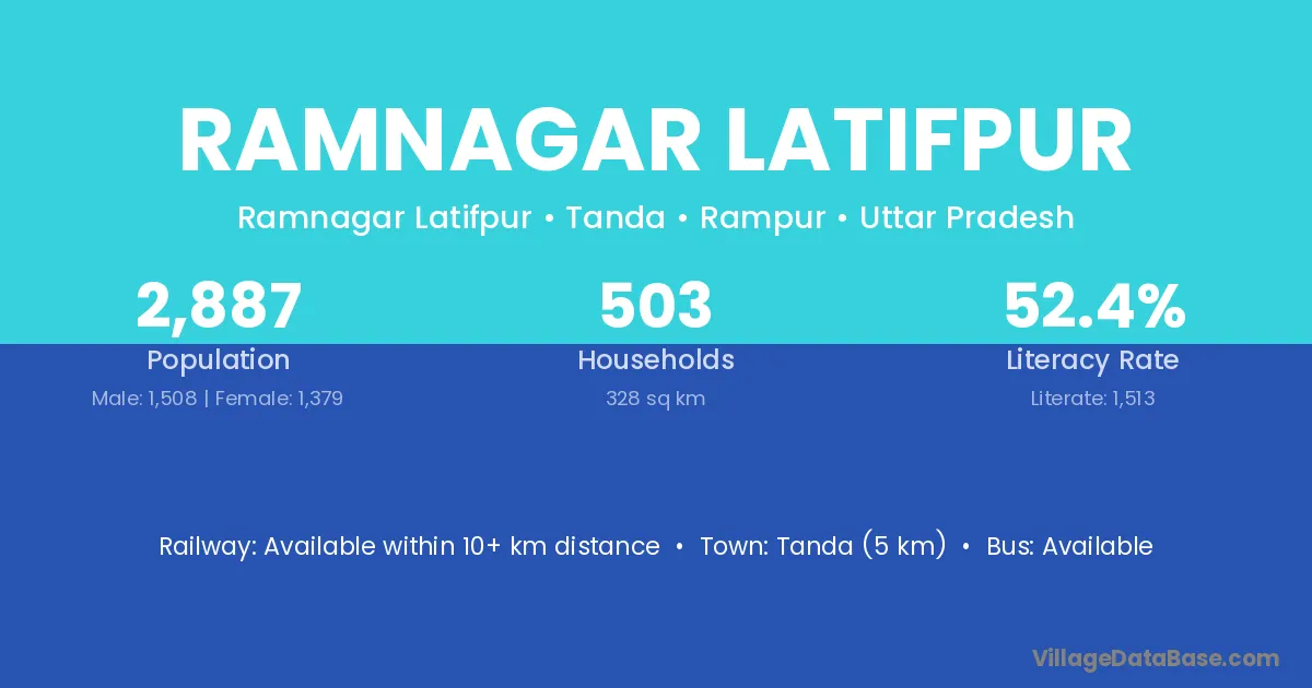 Tanda (5 km) is the nearest town to Ramnagar Latifpur village for major economic activities and is located approximately 5 km away.