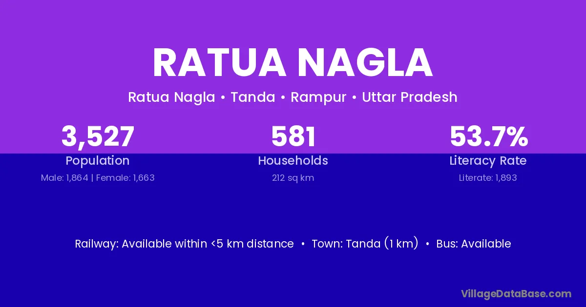 Tanda (1 km) is the nearest town to Ratua Nagla village for major economic activities and is located approximately 1 km away.