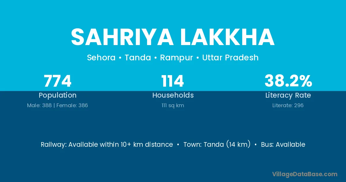 Sahriya Lakkha village has a total population of 774 people, of which 388 are males and 386 are females.