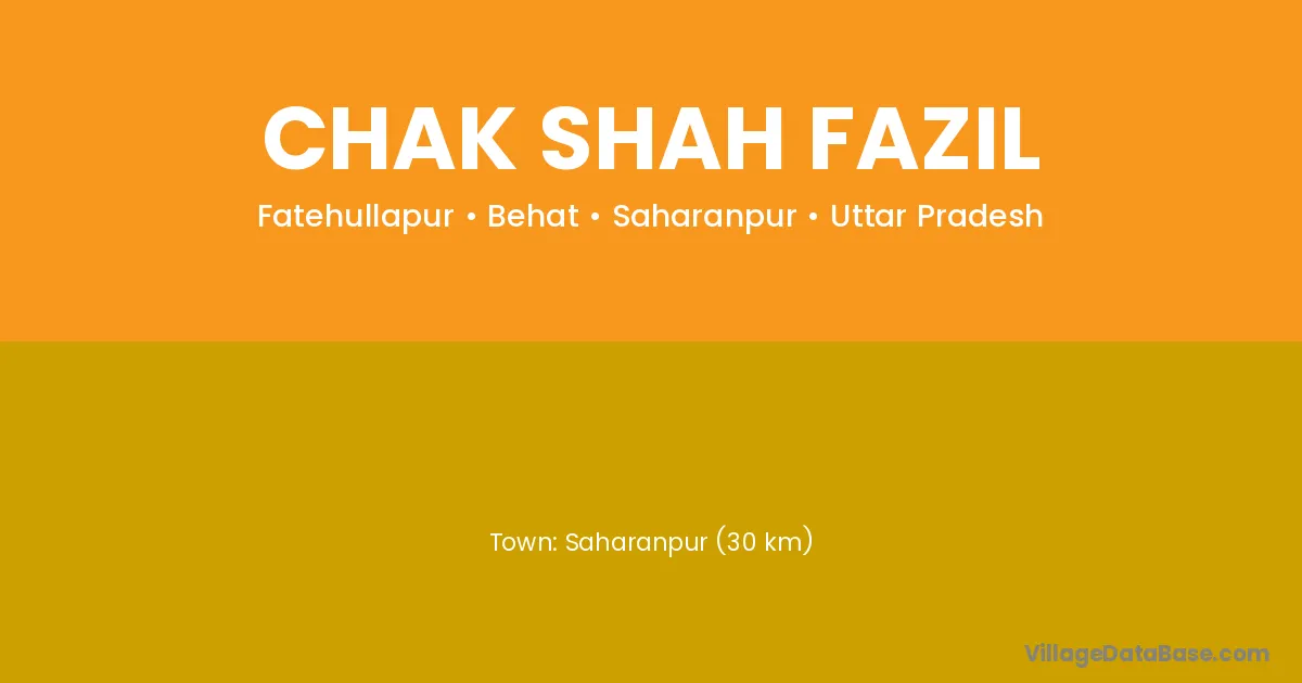 Saharanpur (30 km) is the nearest town to Chak Shah Fazil village for major economic activities and is located approximately 30 km away.