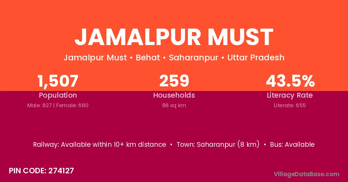 Saharanpur (8 km) is the nearest town to Jamalpur Must village for major economic activities and is located approximately 8 km away.