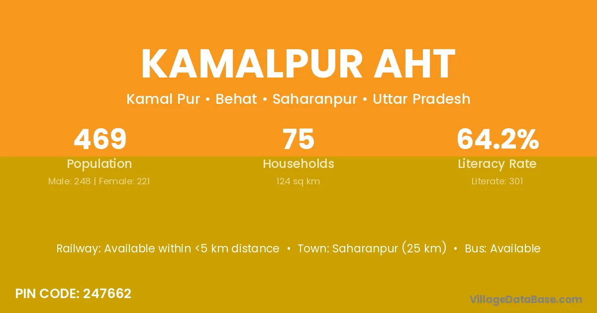 Saharanpur (25 km) is the nearest town to Kamalpur Aht village for major economic activities and is located approximately 25 km away.