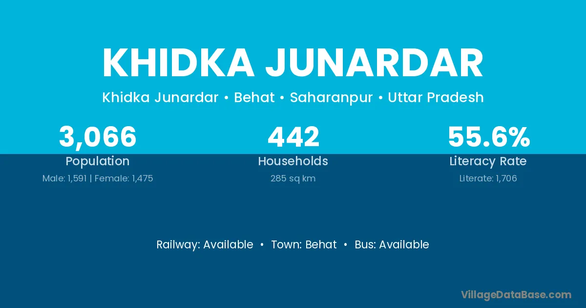 Behat is the nearest town to Khidka Junardar village for major economic activities